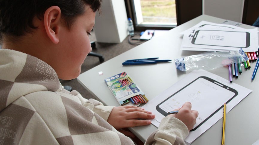 Nach der Theorie dann die Praxis: Die Kinder haben ihre Ideen nach der Diskussion auf ausgedruckten Smartphone-Vorlagen umgesetzt. Diese konnten Sie frei gestalten, bunt bemalen und mit Erläuterungen versehen. Abschließend präsentierten die jungen Co-Designer ihre Entwürfe allen Teilnehmenden. Das PROMPT-Team freut sich über die Unterstützung der Nachwuchs-Entwickler*innen und wird deren Ideen aufgreifen: "Die Erkenntnisse zu den Bedürfnissen der Kinder und der Designideen, die die Kinder zur Erfüllung dieser Bedürfnisse entwickeln, werden in die nächsten Versionen der PROMPT-App einfließen und helfen, diese zu verbessern", so Brod.