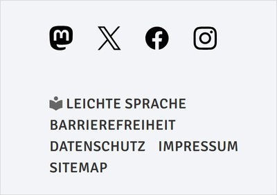 Links unten stehen die Zeichen für die sozialen Netzwerke: